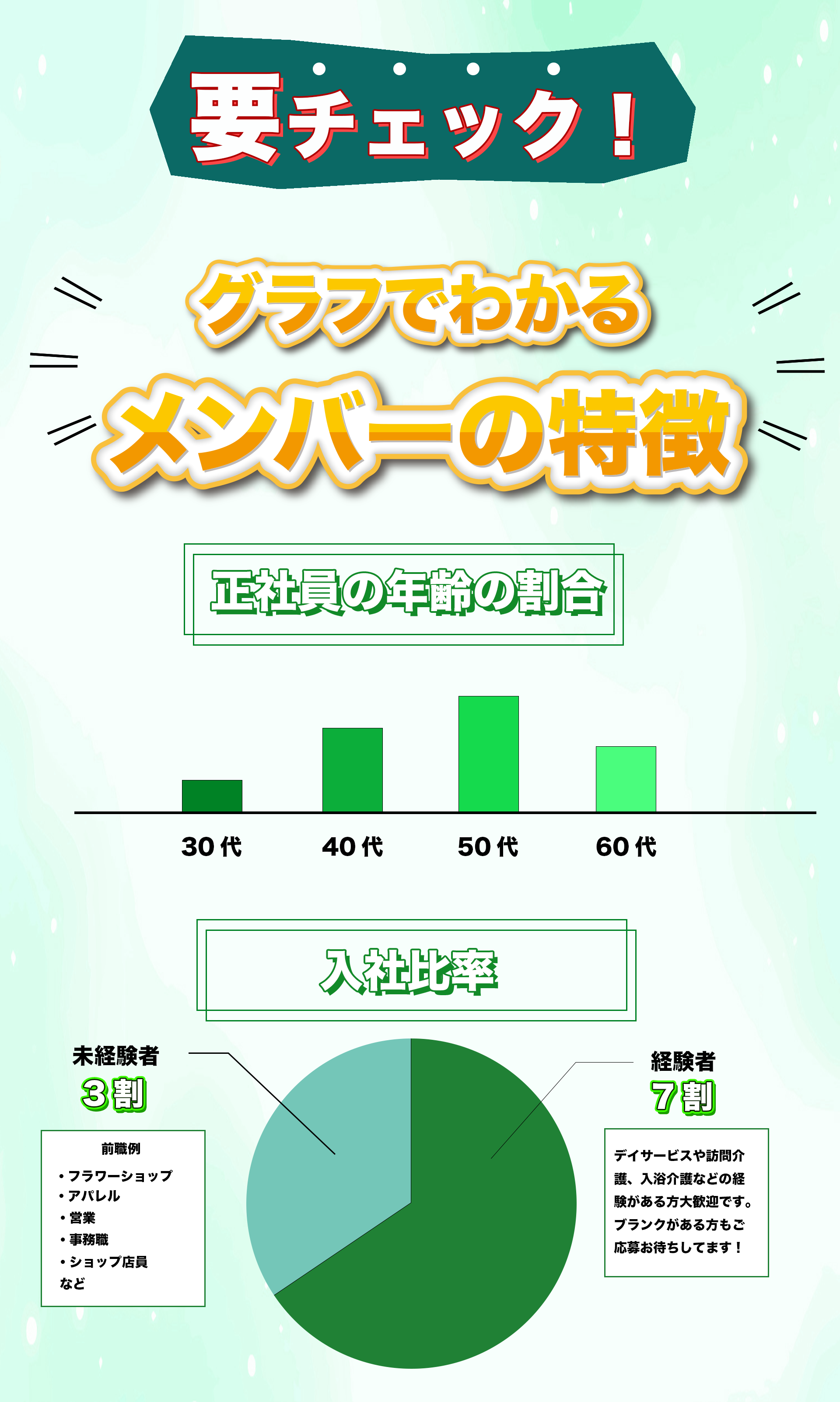 | 雇用形態 | 正社員(常勤ヘルパー)、登録ヘルパー |