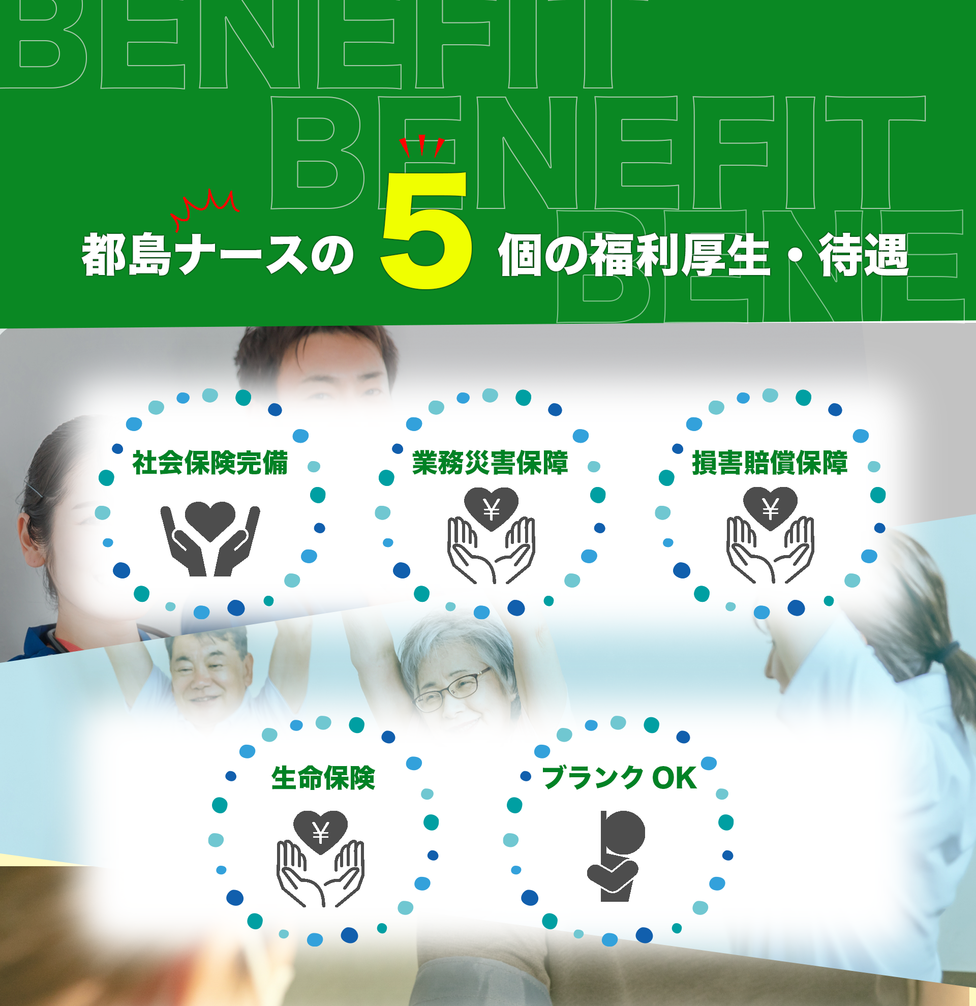 ・社会保険完備 ・業務災害保険 ・損害賠償保険 ・かんぽ生命保険 |