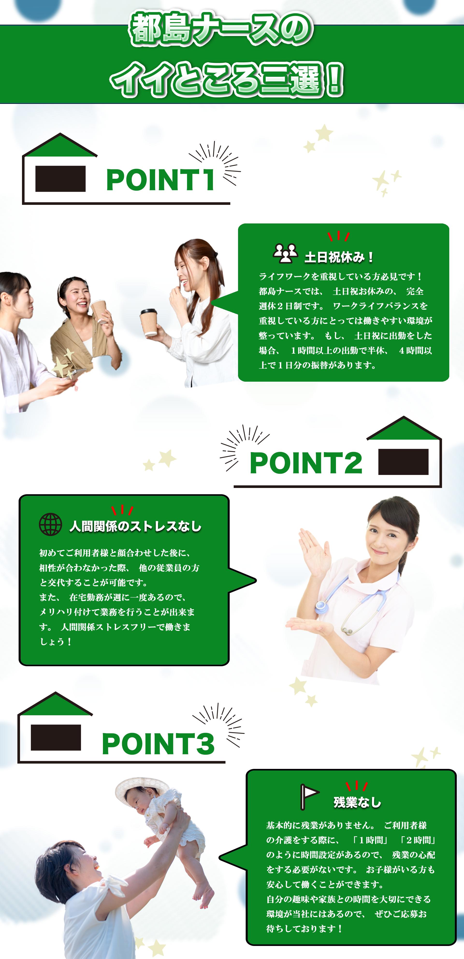 | 休日休暇 | 土・日・祝 ・GW、夏季、年末年始 |